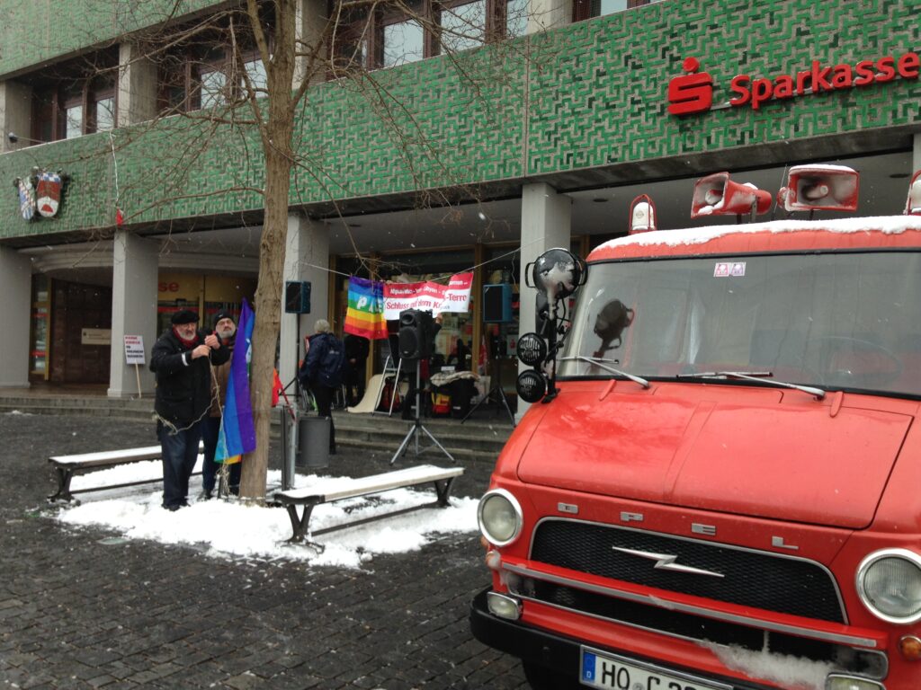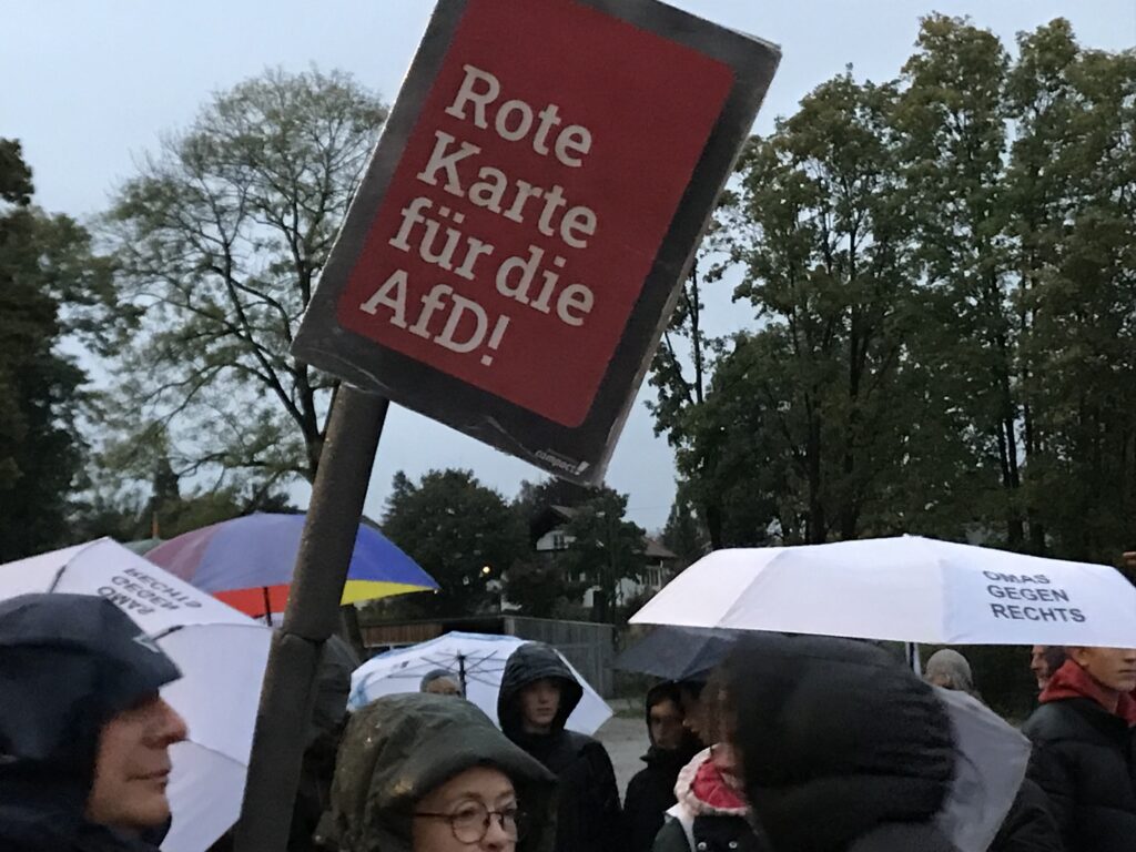 Die AfD hatte eine Veranstaltung, auf der sie ihre kruden Theorien zu den Themen Energie und Klima verbreiten wollten. Das Bündnis bunt statt braun hat das nicht unwidersprochen gelassen. Auch wenn das Wetter recht unangenehm war, wir stellen uns der rechten Propaganda lautstark entgegen. Der Blitz war vor Ort und konnte mit seinem Equipment unterstützen.