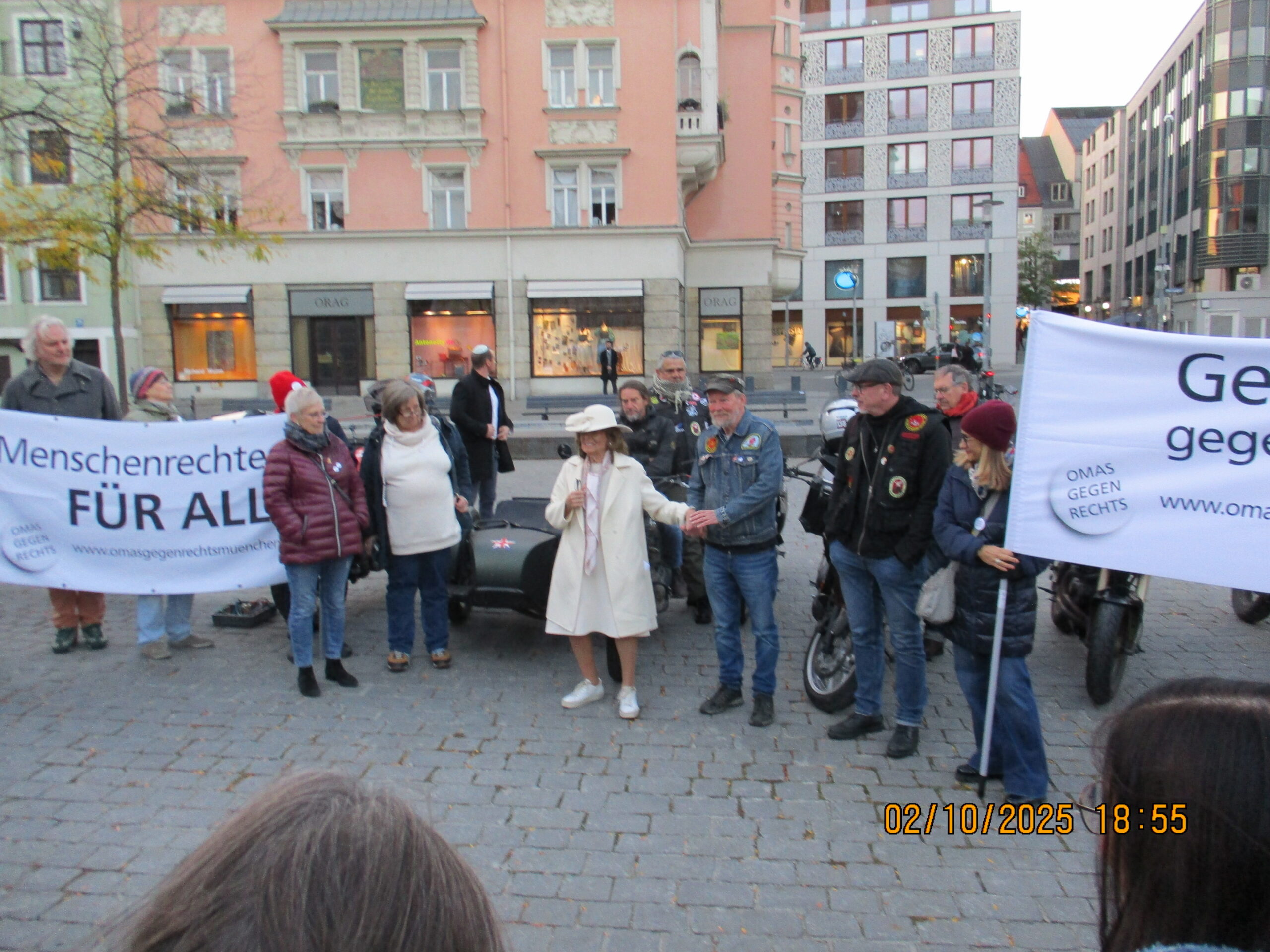 02.10.2025 Mahnwache des MC Kuhle Wampe München gegen Rassismus und Antisemitismus unter dem Motto „Wir schützen unsere Synagoge“ vor der Münchner Synagoge, in diesem Jahr erstmals mit Unterstützung des Roten Blitz. Antisemitismus und Judenhass haben keinen Platz in unserer Stadt!
